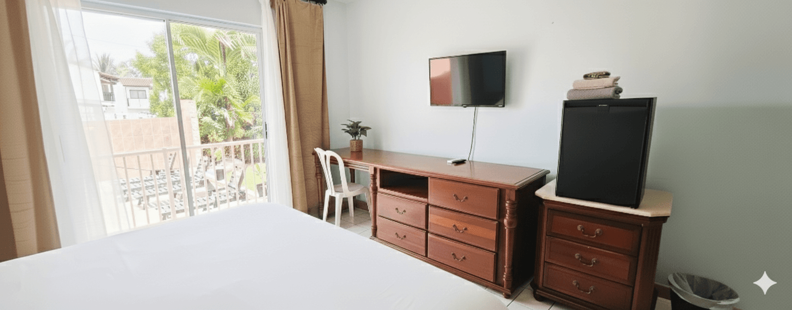 Poolside & Ocean Glimpse RetreatsWelcome to your convenient and inviting Accessible King Bed Room at Selva Boutique Hotel, your genuine Luquillo, Puerto Rico adults-only retreat. Thoughtfully adapted for accessibility, this first-level sanctuary features a comfortable king-size bed, making it perfect for solo adventurers or couples seeking a humble, easy-to-navigate stay. Step onto your private balcony for a refreshing view of our inviting pool and a peek at the shimmering Atlantic, connecting you to the calming oceanfront surroundings. Like all our spaces, it embodies the spirit of self-sustainability with carefully chosen elements. Stay connected with free Wi-Fi and enjoy essentials designed for a restful stay after exploring El Yunque Rainforest or the Luquillo Kiosks.